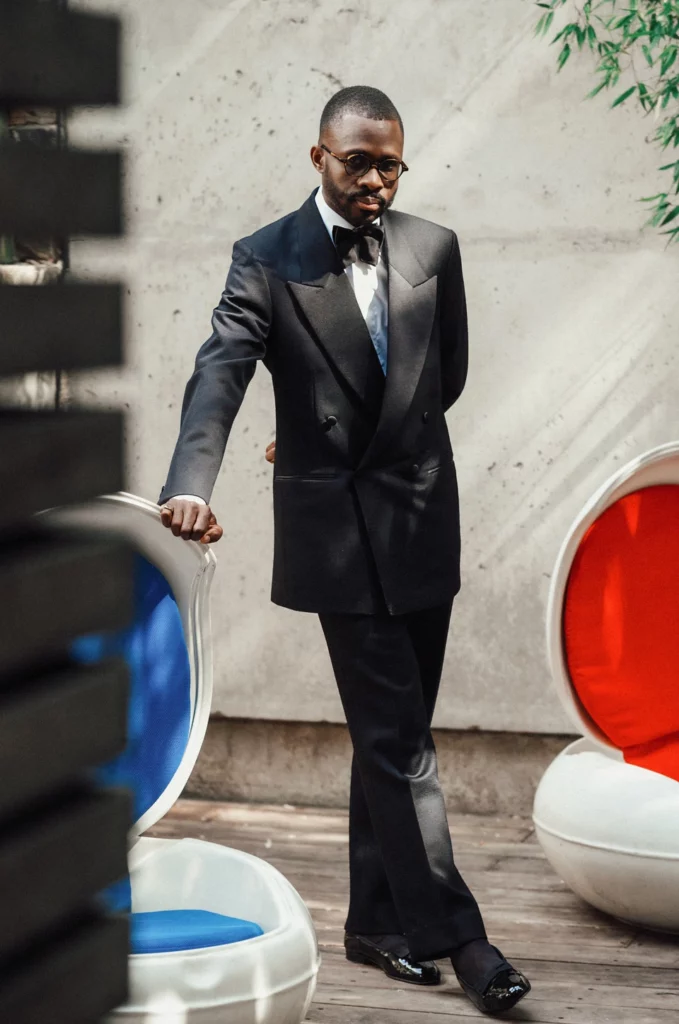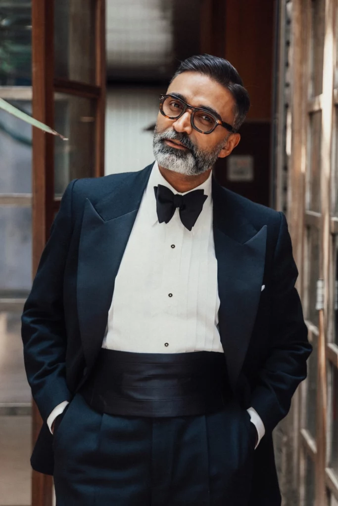 The satin lapels, in either shawl or peak, catch candlelight in a way that feels intentional. The black bow tie maintains symmetry and proportion. The minimal colour palette enforces discipline. It is simple, classy and refined while toeing the line under the previous rigid rules of black tie.